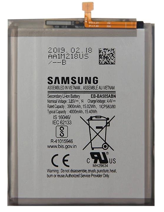 Produkt o najwyższej jakości gotowy do montażu. Bateria posiada zabezpieczenia chroniące przed przepięciem, przegrzaniem oraz przeładowaniem. Brak efektu Pamięci baterii. Jest to wersja bulk (OEM), czyli baterie pakowane w woreczek foliowy.| Model baterii | EB-BA505ABN |